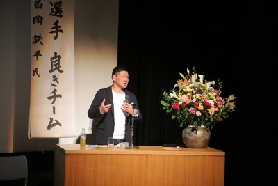 第1部記念講演会は、元ラグビー日本代表、元東芝ブレイブルーパス東京監督の冨岡鉄平氏に『ラグビー流「良き選手」「良きチーム」』と題して講演いただきました。冨岡氏のエネルギッシュな講演を通して、目的を持ってスポーツに取組む事の大切さを学びました。