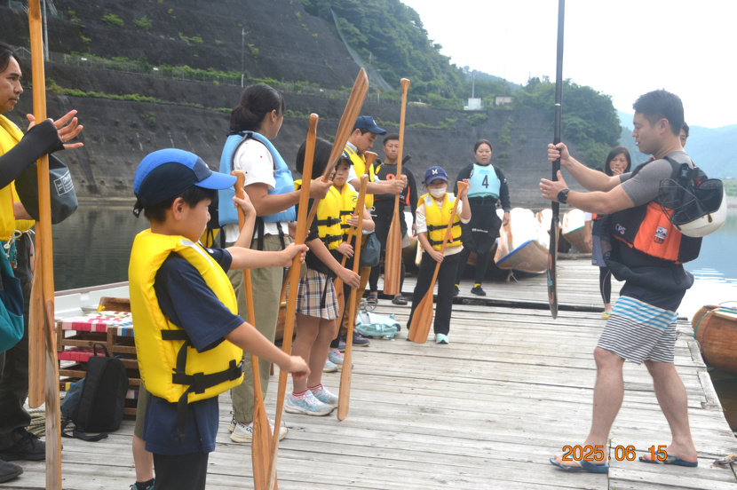 令和7年6月14日(土)名栗湖(カヌー工房)に於いて親子カヌー体験教室を開催しました。雨雲がかかった名栗湖でしたが、親子9組19名の方が参加されました。