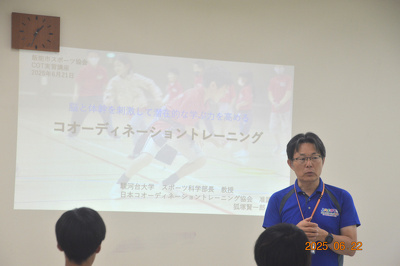 午前に行われた体験会では、講師の狐塚賢一郎氏からコオーディネーショントレーニングとは『運動を学習する時に早く学習できるようにするための″学ぶ力″を得ることを最大の目的としたトレーニングである』こと等を話されました。